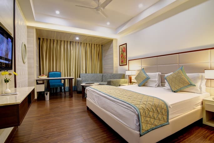 Executive Rooms - A haven of luxury and comfort, the executive rooms at Chanakya are contemporary in design. With a king-size bed, choice of ambient lighting and elegant interiors, this room also has an exquisite bathroom. Enjoy the exclusive city view from these luxury guest rooms.