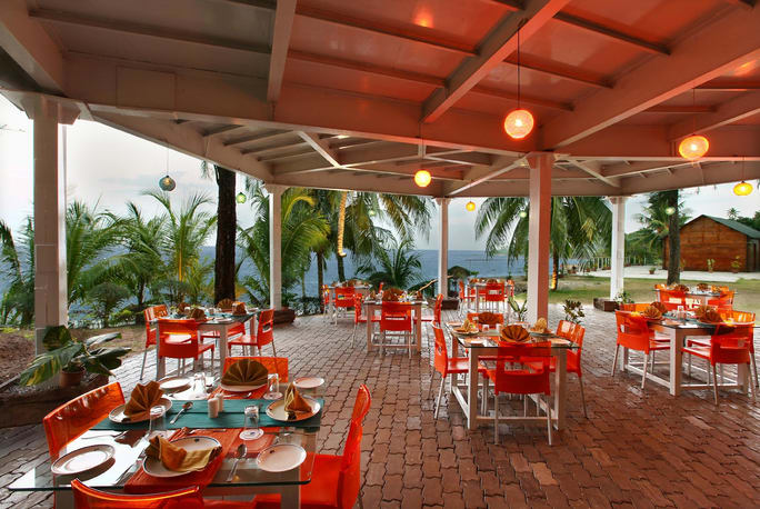 Located right on the waterfront, Sinclairs Bayview is Port Blair's only hotel to offer spectacular views of The Bay of Bengal from almost all its rooms. Refreshingly environment friendly and functionally decorated, the hotel is a quiet getaway for those who want to unwind and explore the Andamans. The hotel is 15 minutes away from the airport and the town’s shopping center.The hotel's 46 rooms and suites are more than sea facing; they are virtually on the sea, opening out to the crystal blue Indian Ocean waters. The Valentine rooms offer views of the blue ocean on one side, and Ross Island on the other.The sea facing multicuisine restaurant has an open view to the garden surrounded by palm trees. A covered deck allows you to feel the cool sea breeze and hear the sound of waves. The Spanish bar has a relaxed old world ambience and offers snacks and drinks. Private candlelight dinners can be organised for your birthday or anniversary.